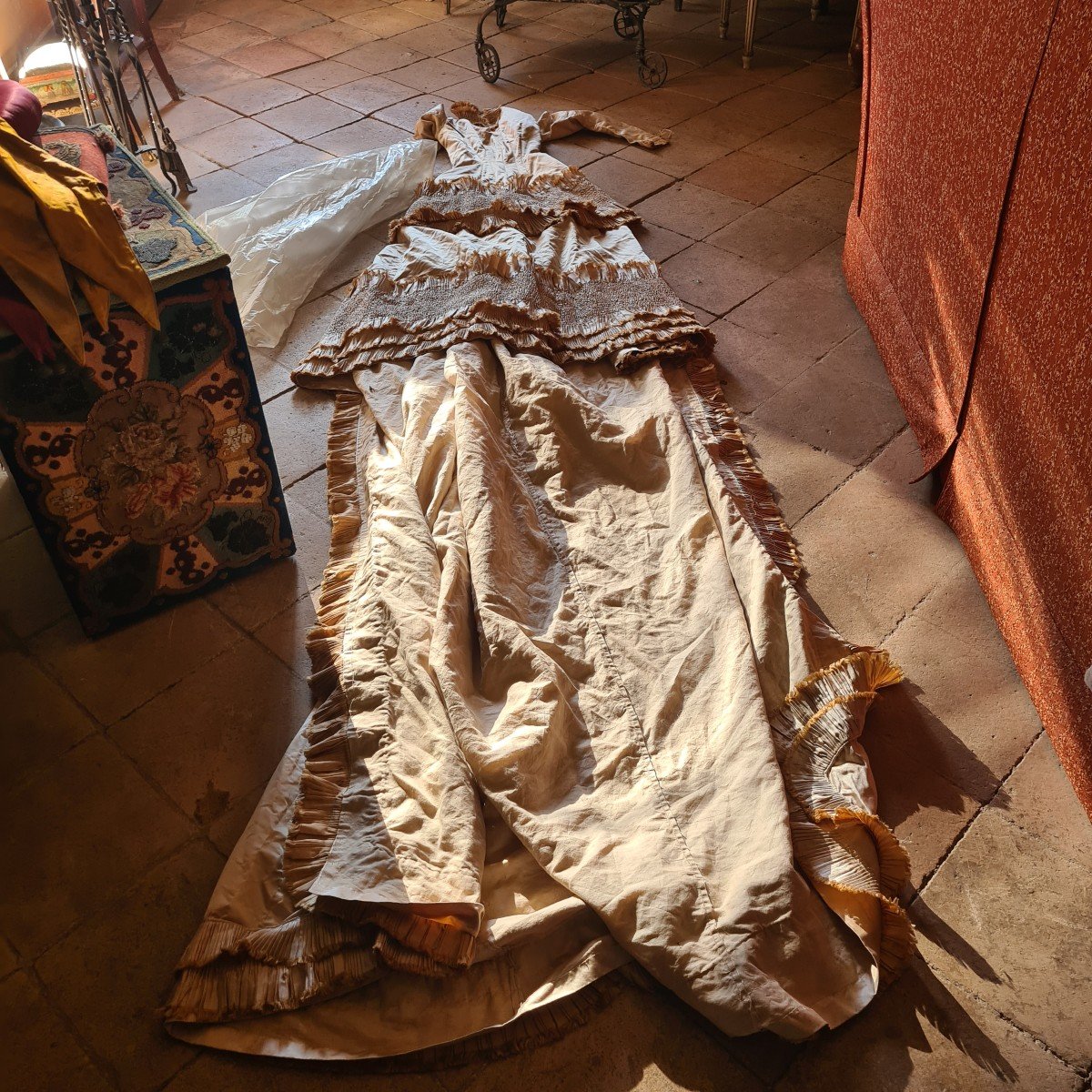 Antico abito da sposa con lunga coda