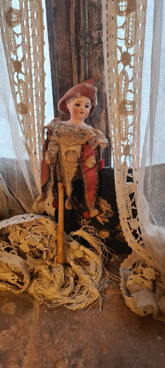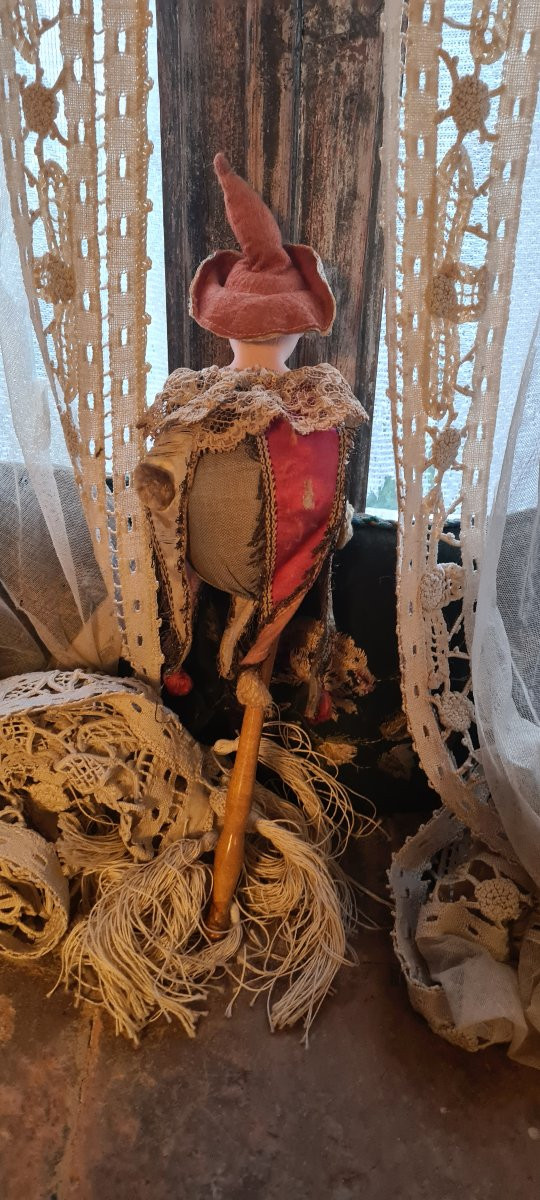 Marotte con costume e capello originali. Gira bene sul suo bastone ma non si sente la musica.