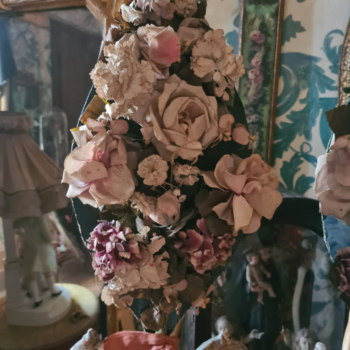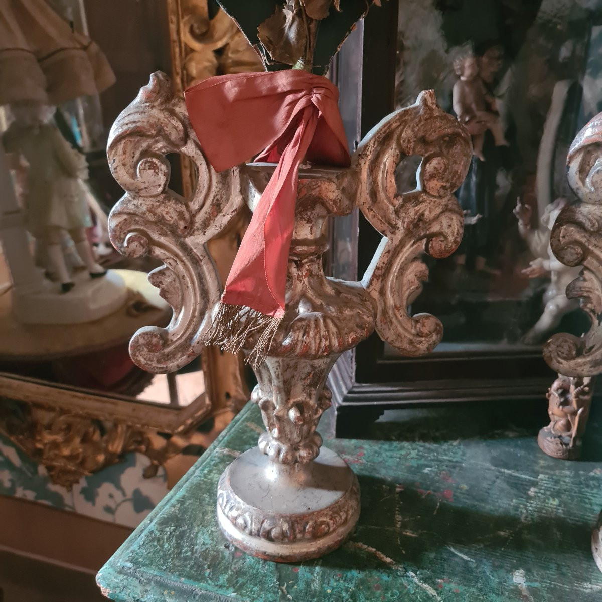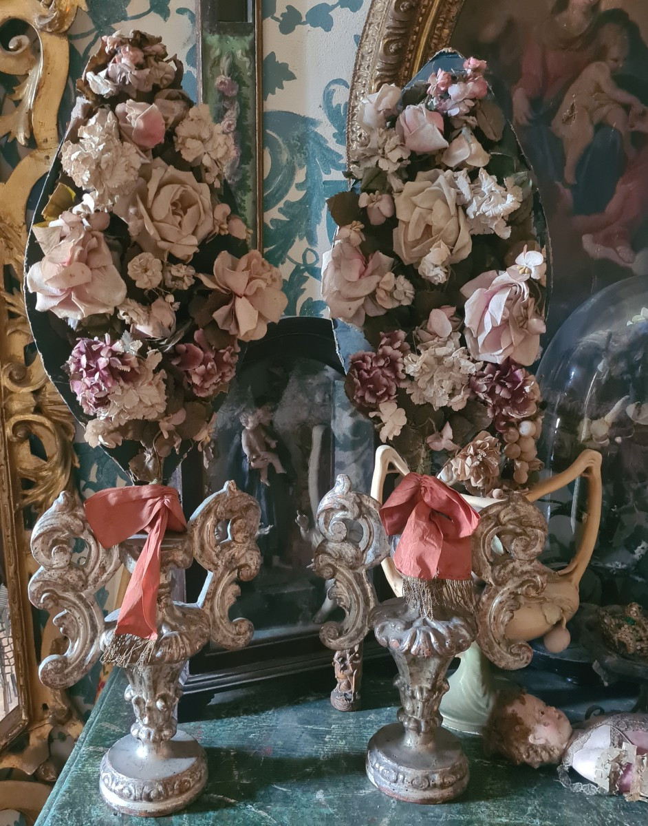 Palme e portapalme del 700 argentati e con fiori di stoffa