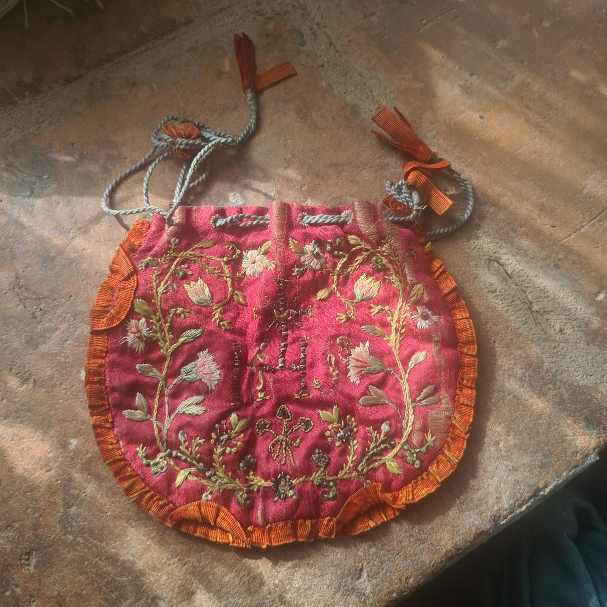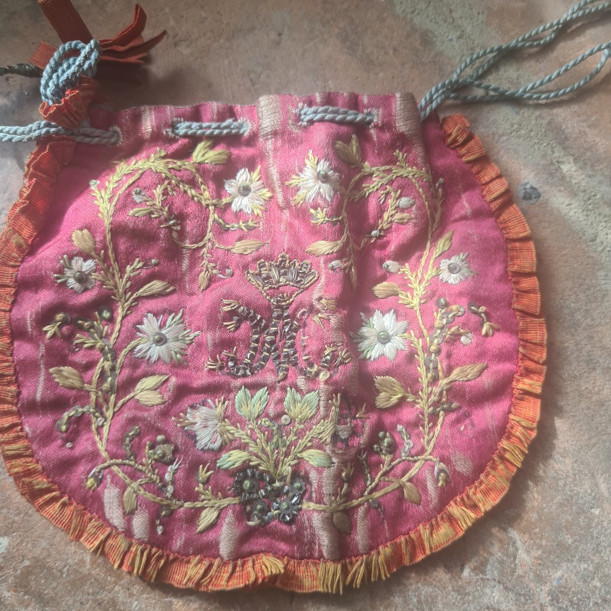 Borsetta portaostie ricamata fine 1700