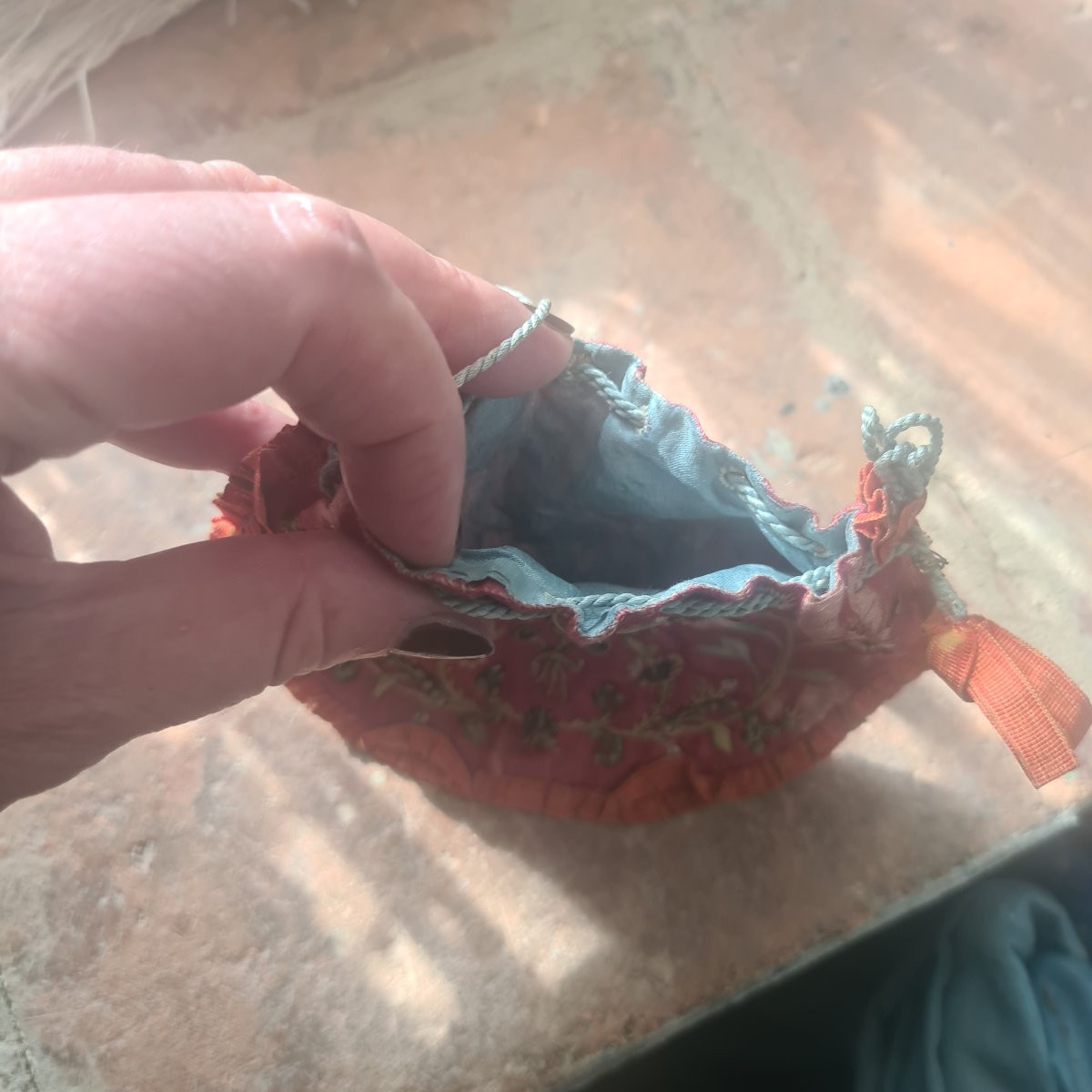 Borsetta ricamata. Qualche usure nella seta